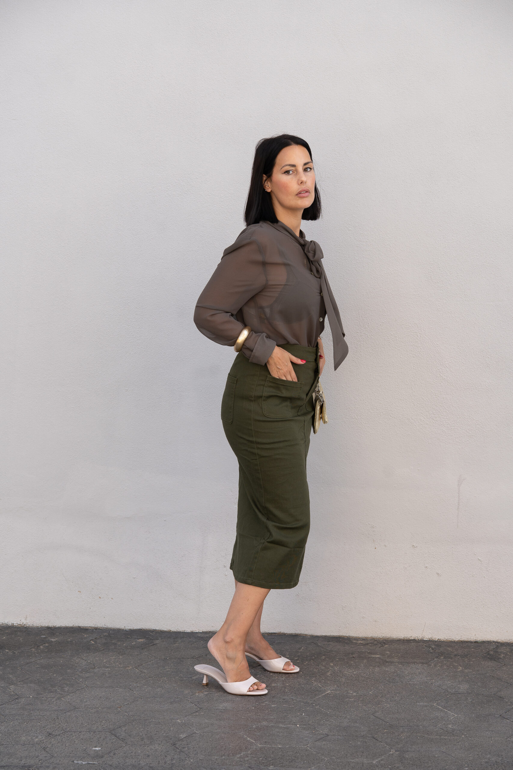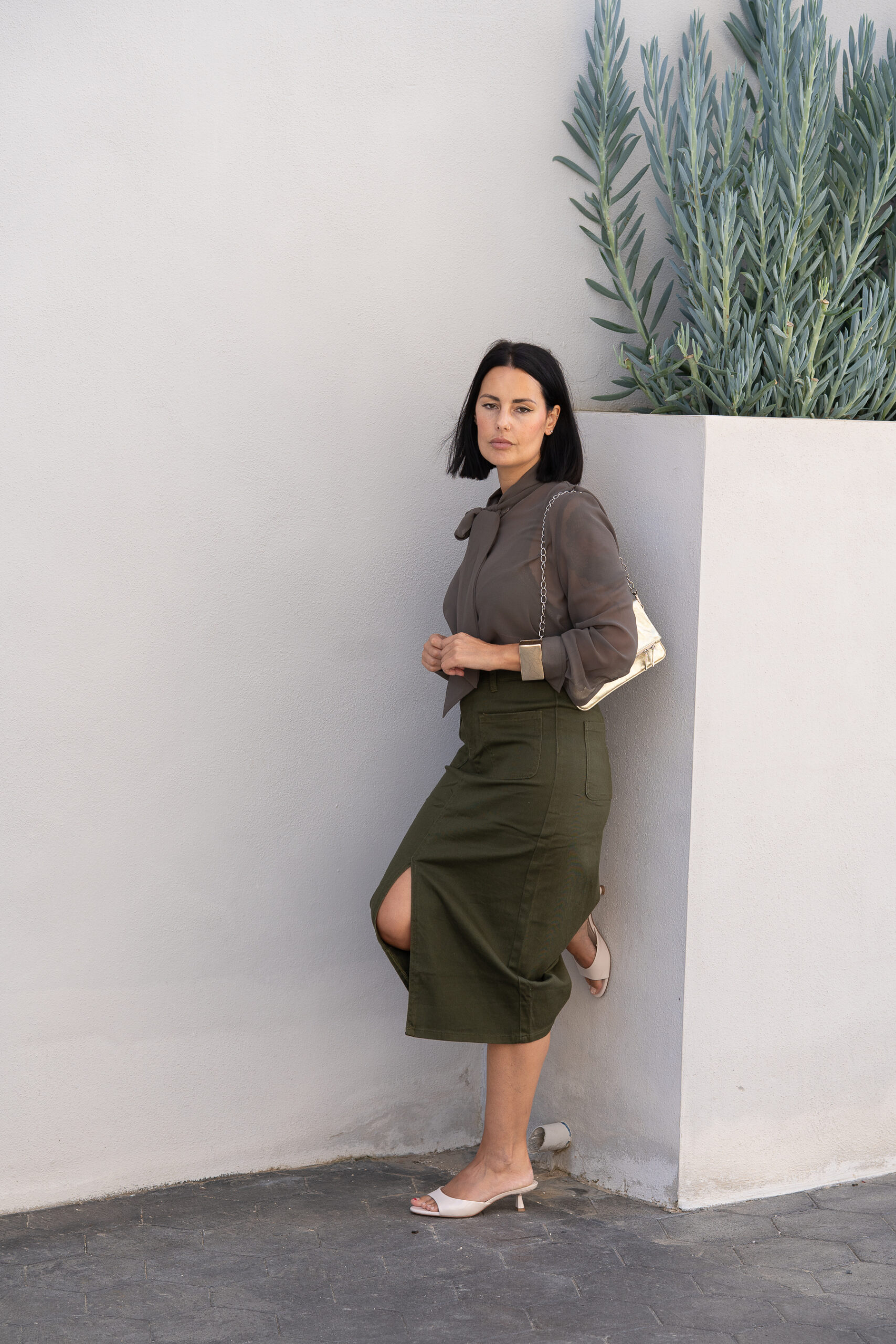 Falda midi Kaki